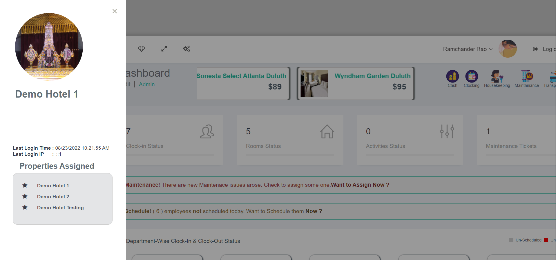 Swipe the employee from one property to other property instantly in exigency and get the employee timesheet and payroll at one place. One click to swipe other properties to view the performance of the employees on finger tips.